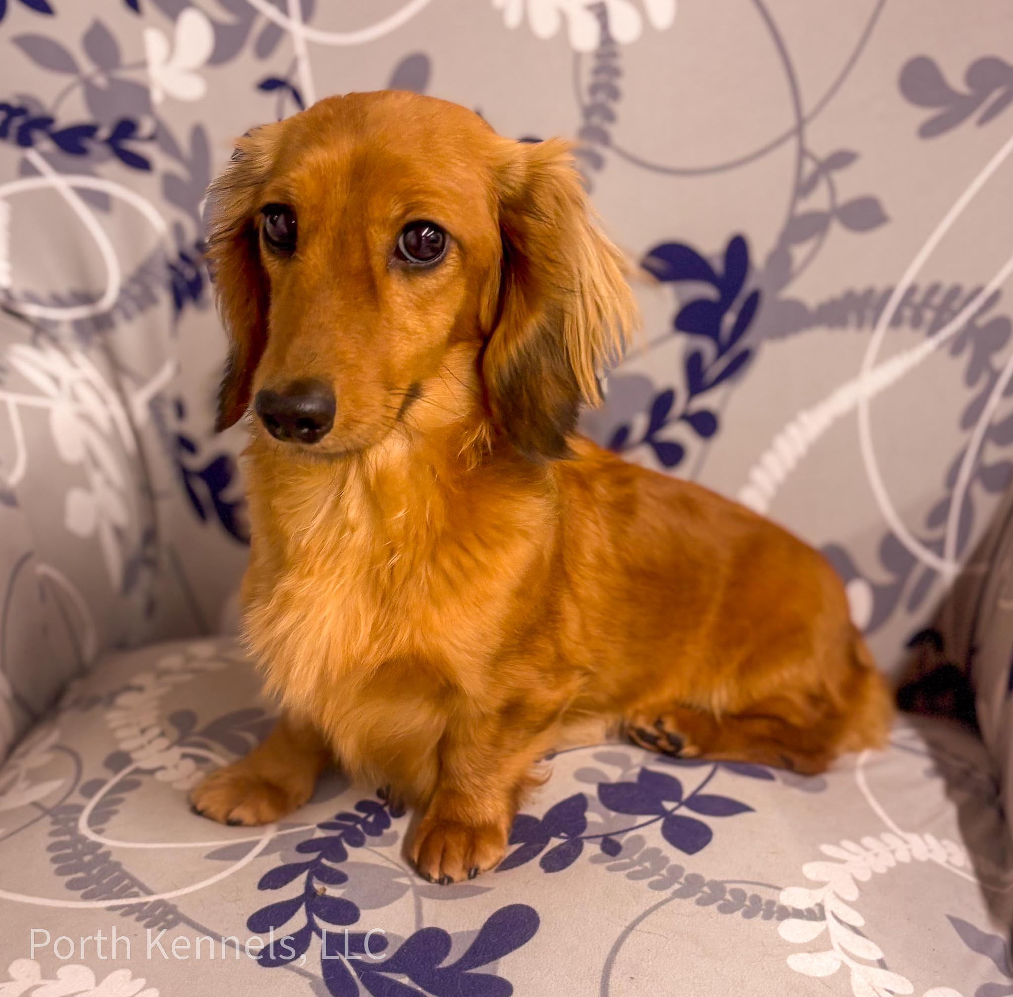 Gia is a gorgeous red, long coat miniature Dachshund. She has produced beautiful litters, as did her mother and grandmother.